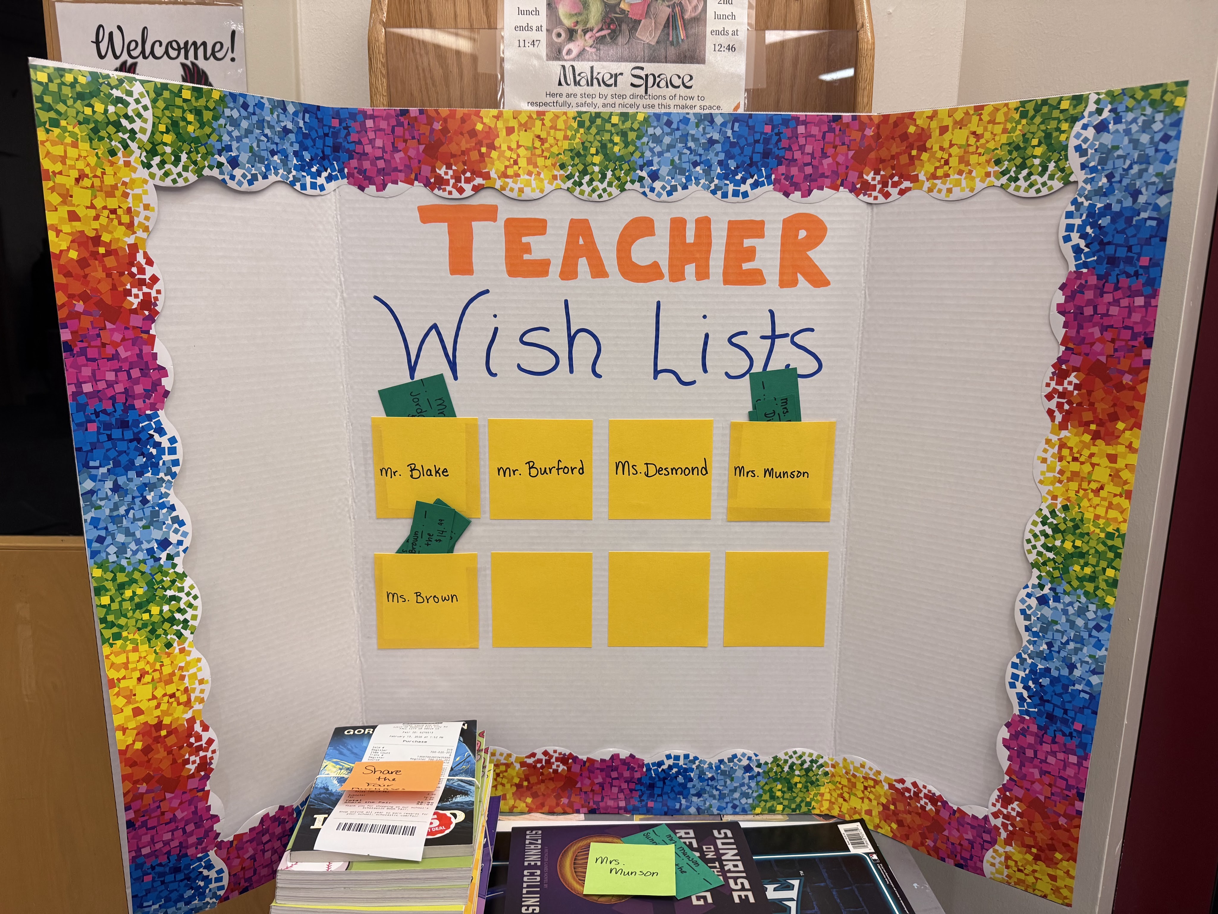 I also created a “Teacher Wish Lists” board so shoppers could easily see which books teachers were hoping to add to their classrooms. Bonus: Almost all of the wish list items were purchased by the end of the week!